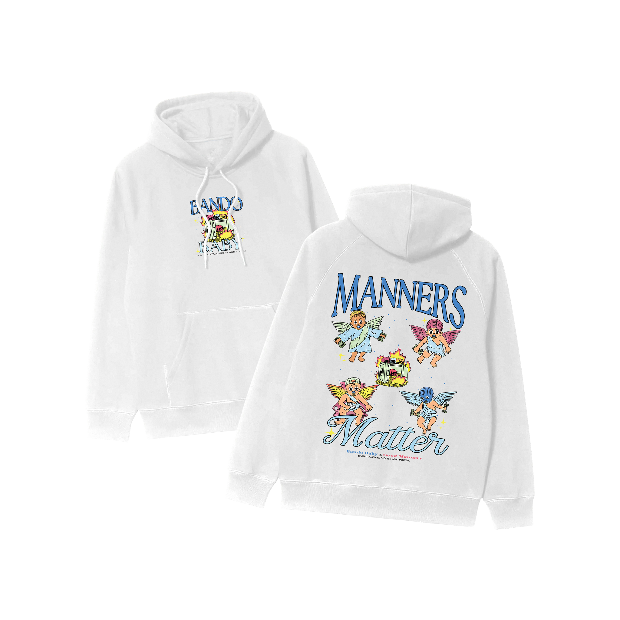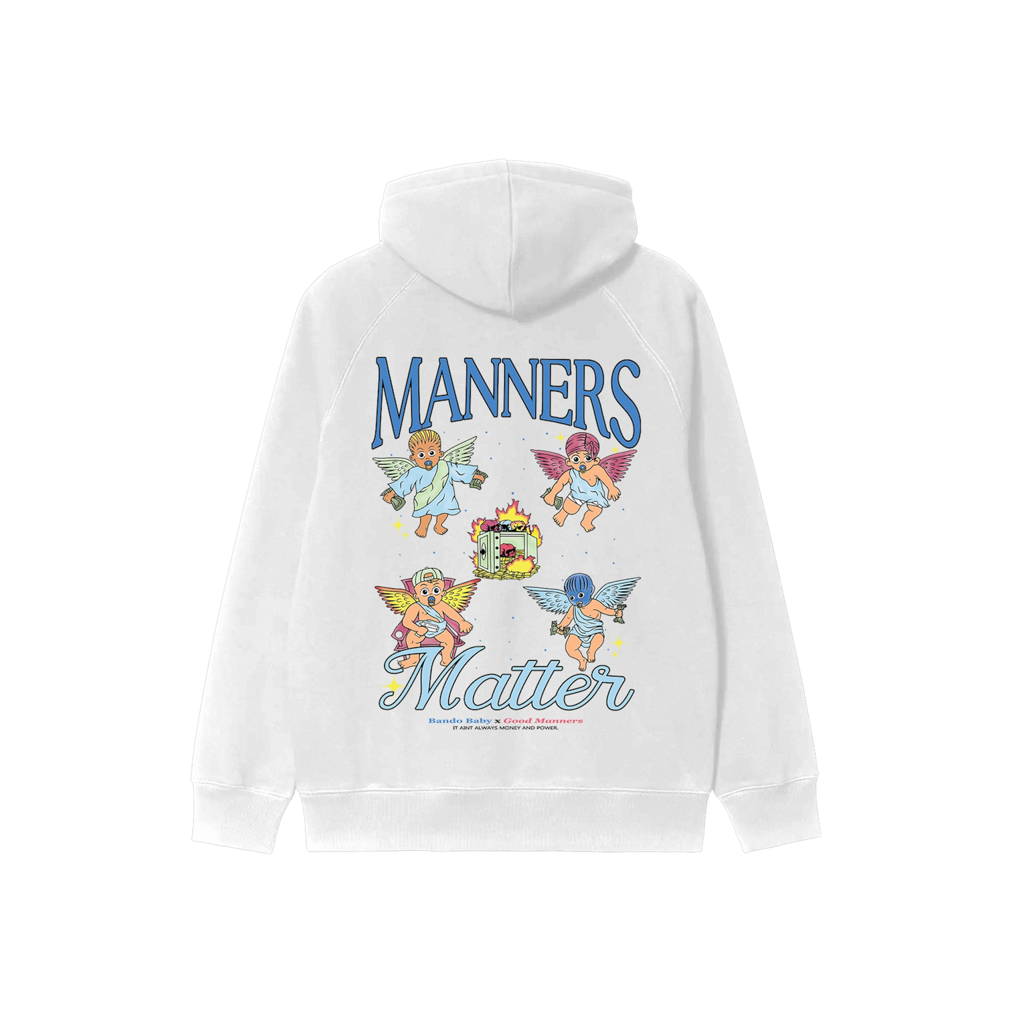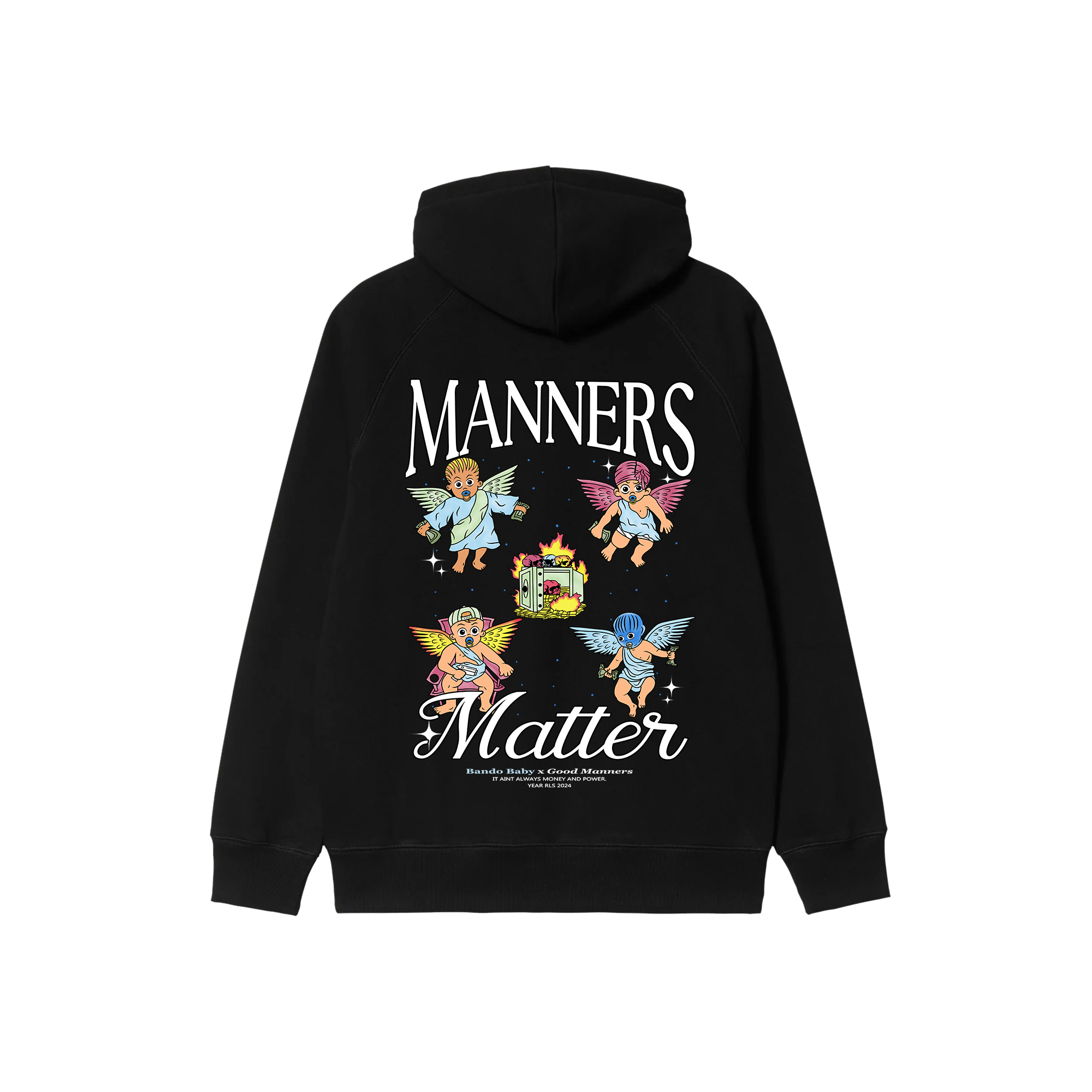 Make a statement with the Manners Matter Hoodie in classic black and white. Featuring four cherub-style baby graphics across the back, this streetwear essential blends bold cartoon-inspired art with modern urban edge. Crafted from premium cotton for a soft, heavyweight feel, it’s perfect for everyday wear or standout fits. The relaxed fit and detailed print make this hoodie a must-have for anyone pushing street culture with personality and attitude.