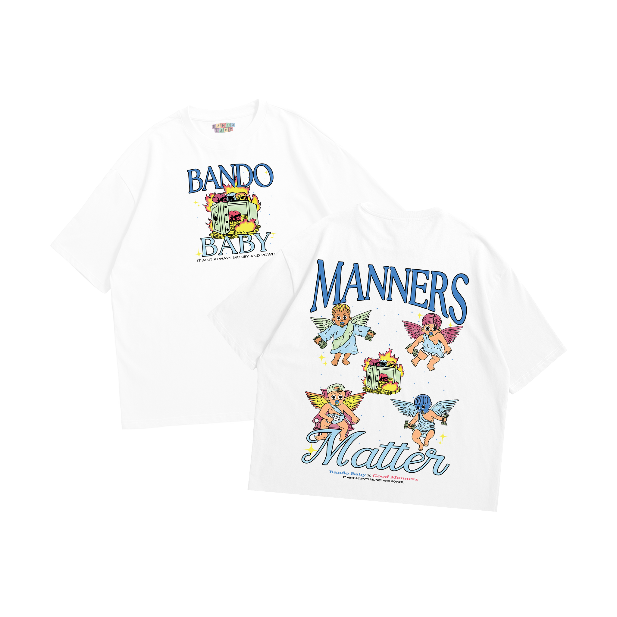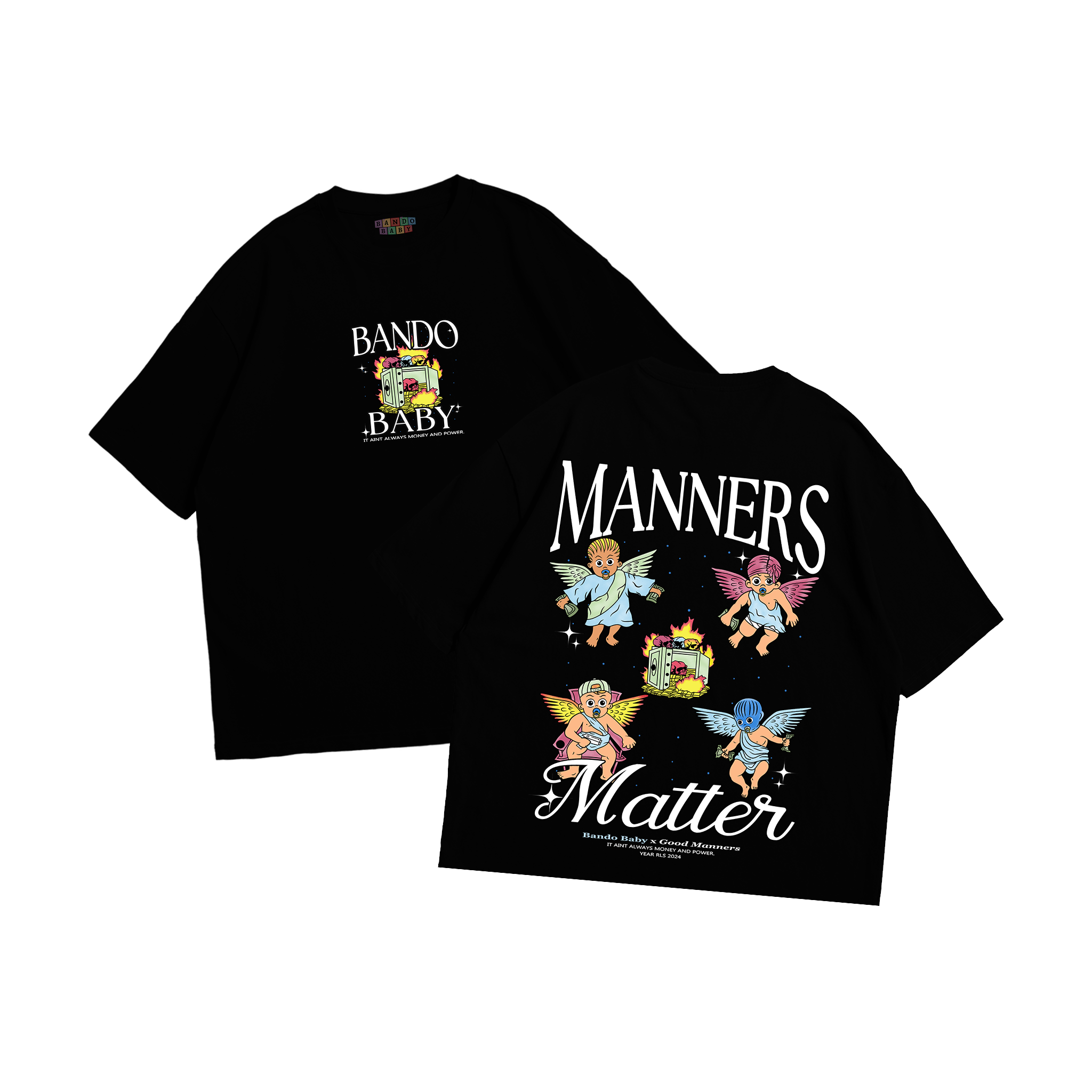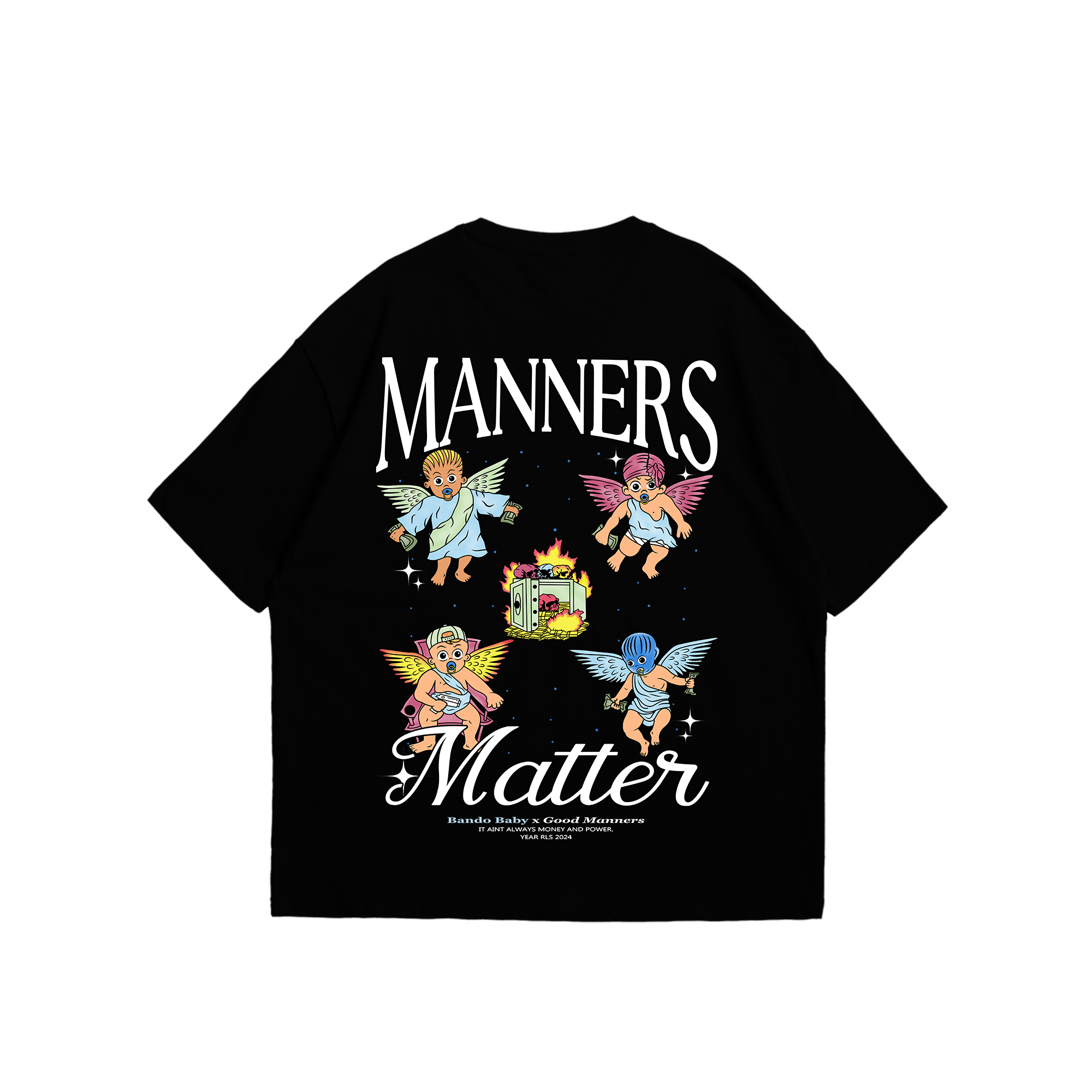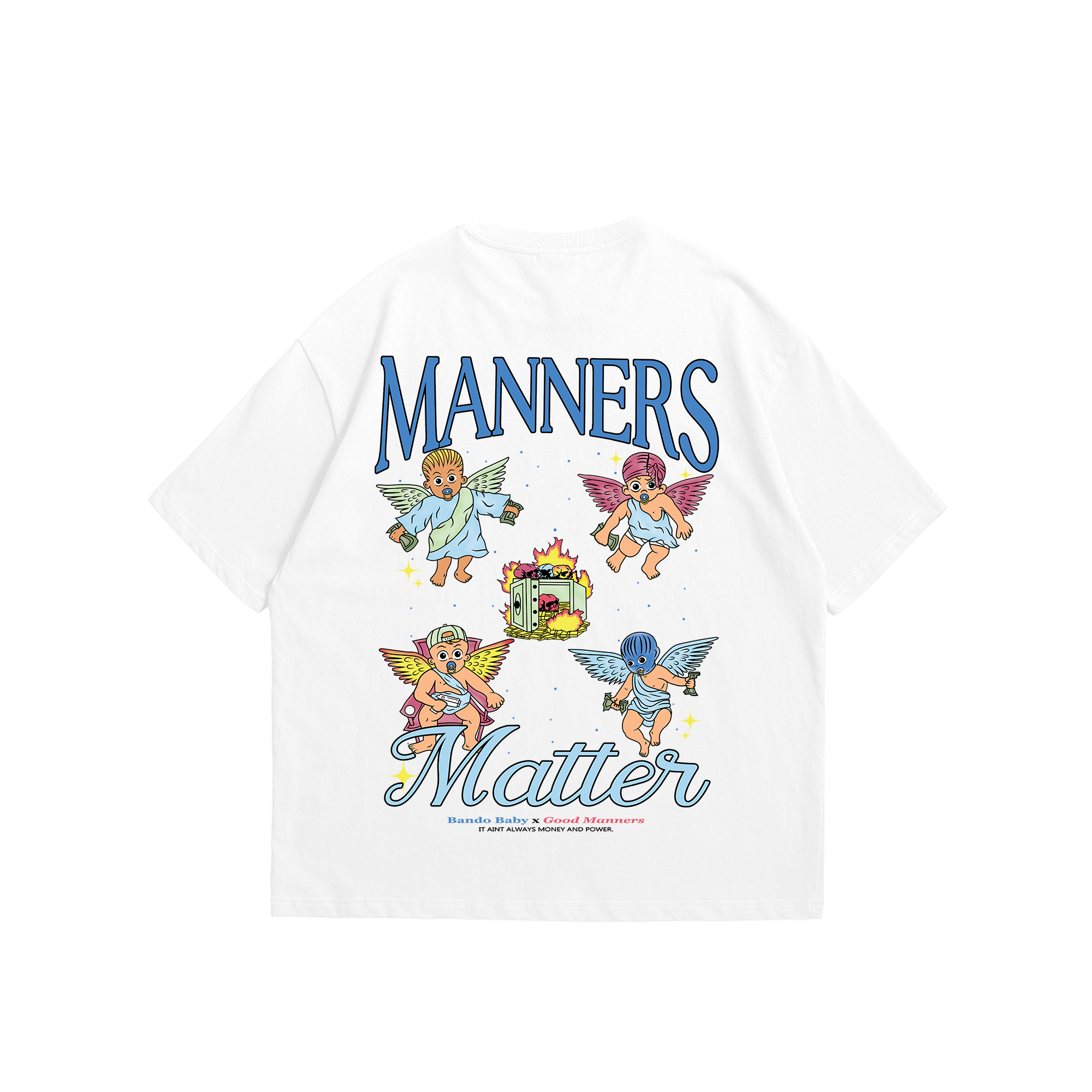 Elevate your streetwear with the Manners Matter T-Shirt in classic black and white. Featuring four playful cherub-style baby graphics on the back, this tee blends bold cartoon art with everyday comfort. Made from soft, premium cotton for breathability and durability, it’s perfect for casual wear or layering in urban fashion looks. Its relaxed fit offers comfort without compromising style, making it a standout piece for anyone who values attitude and originality.