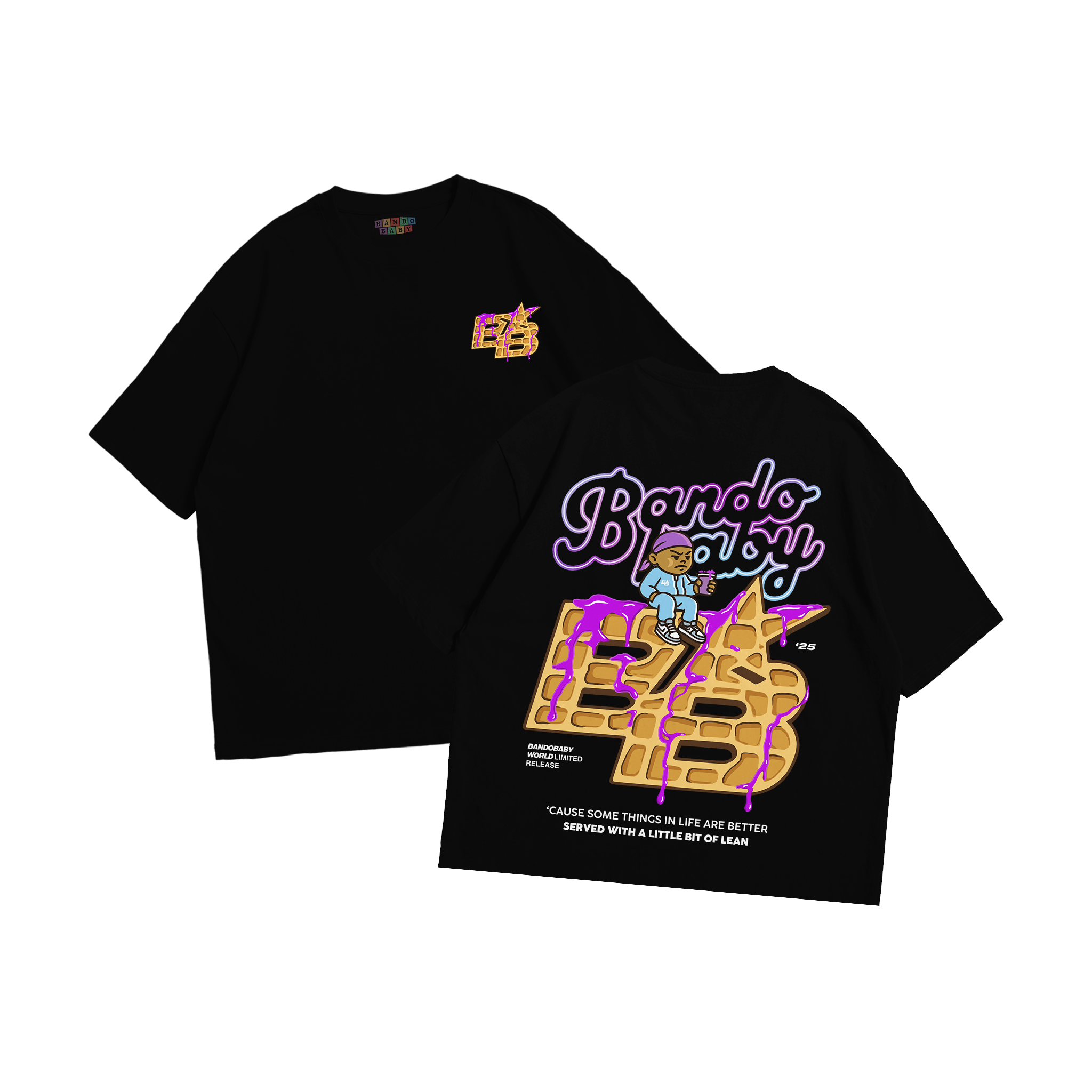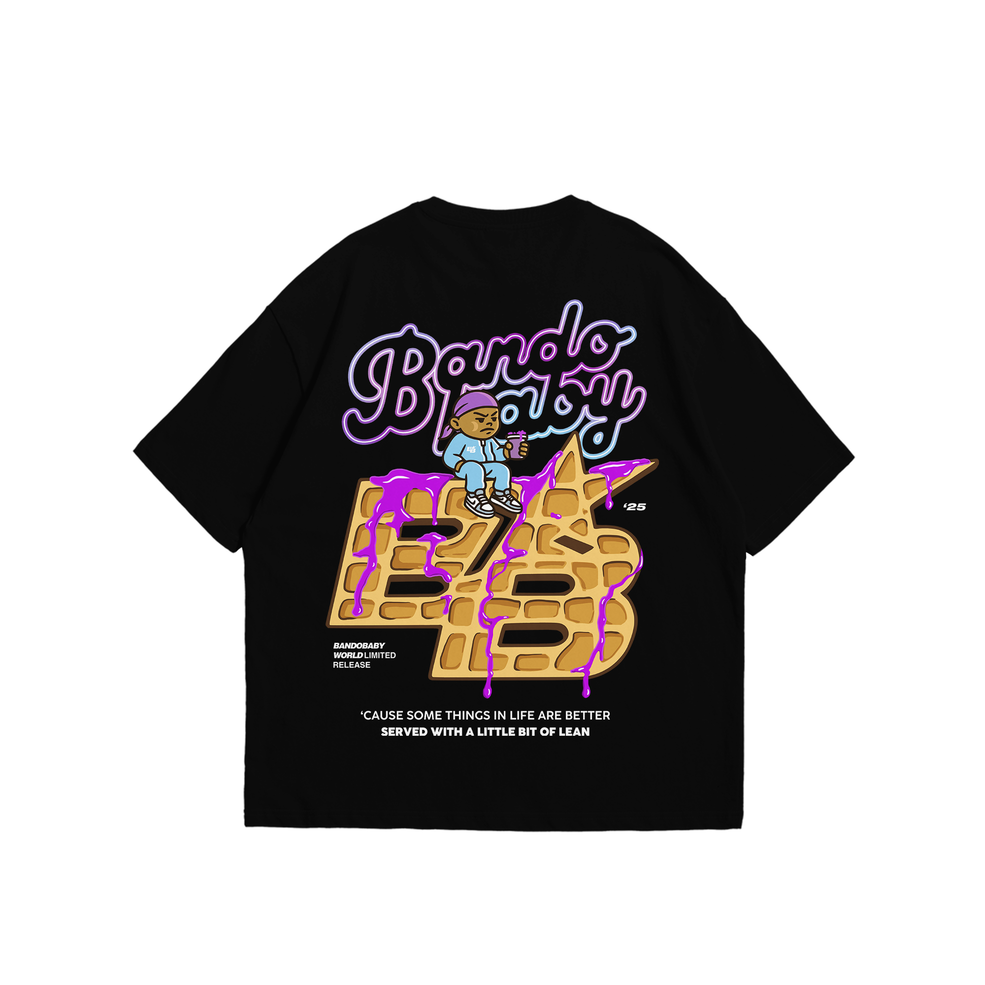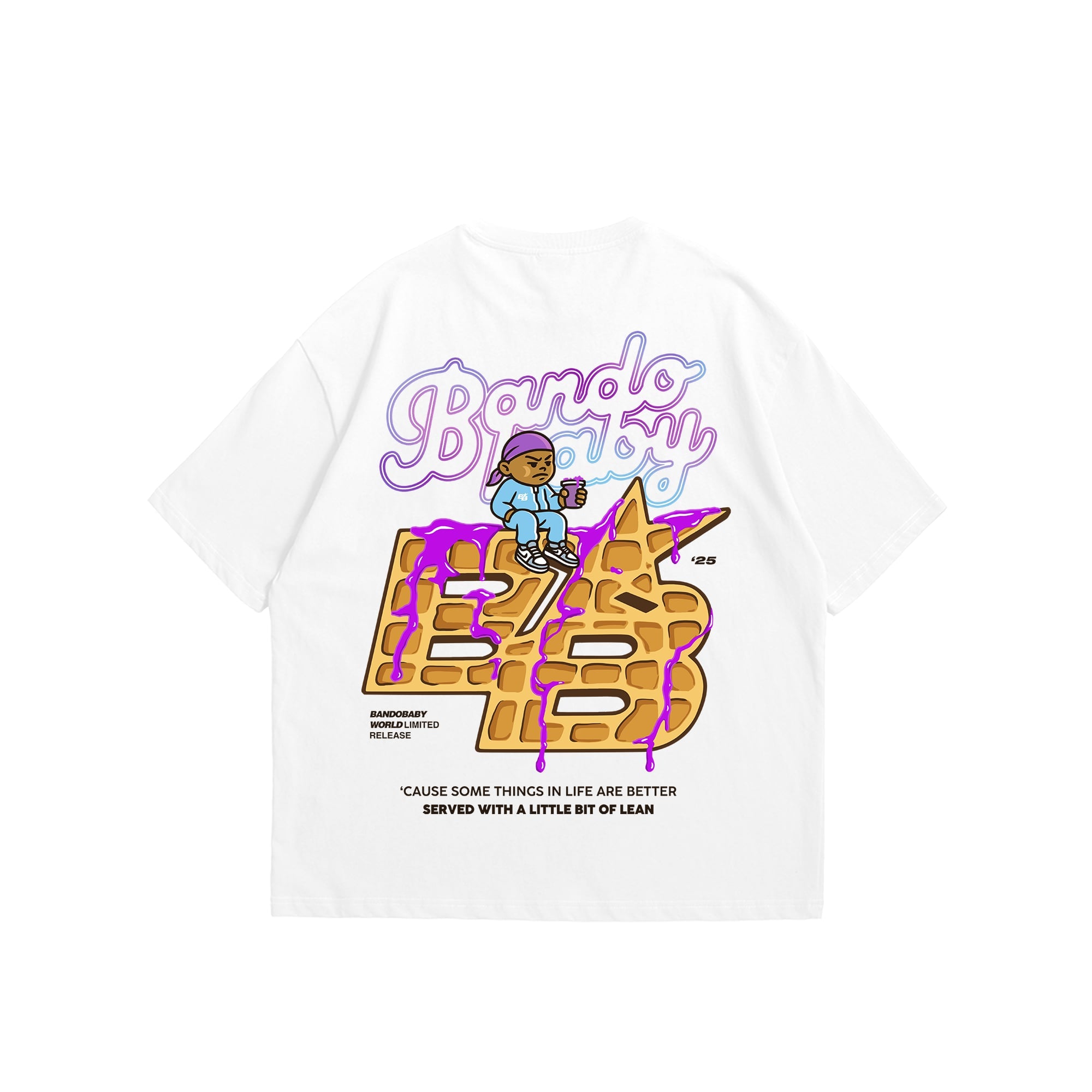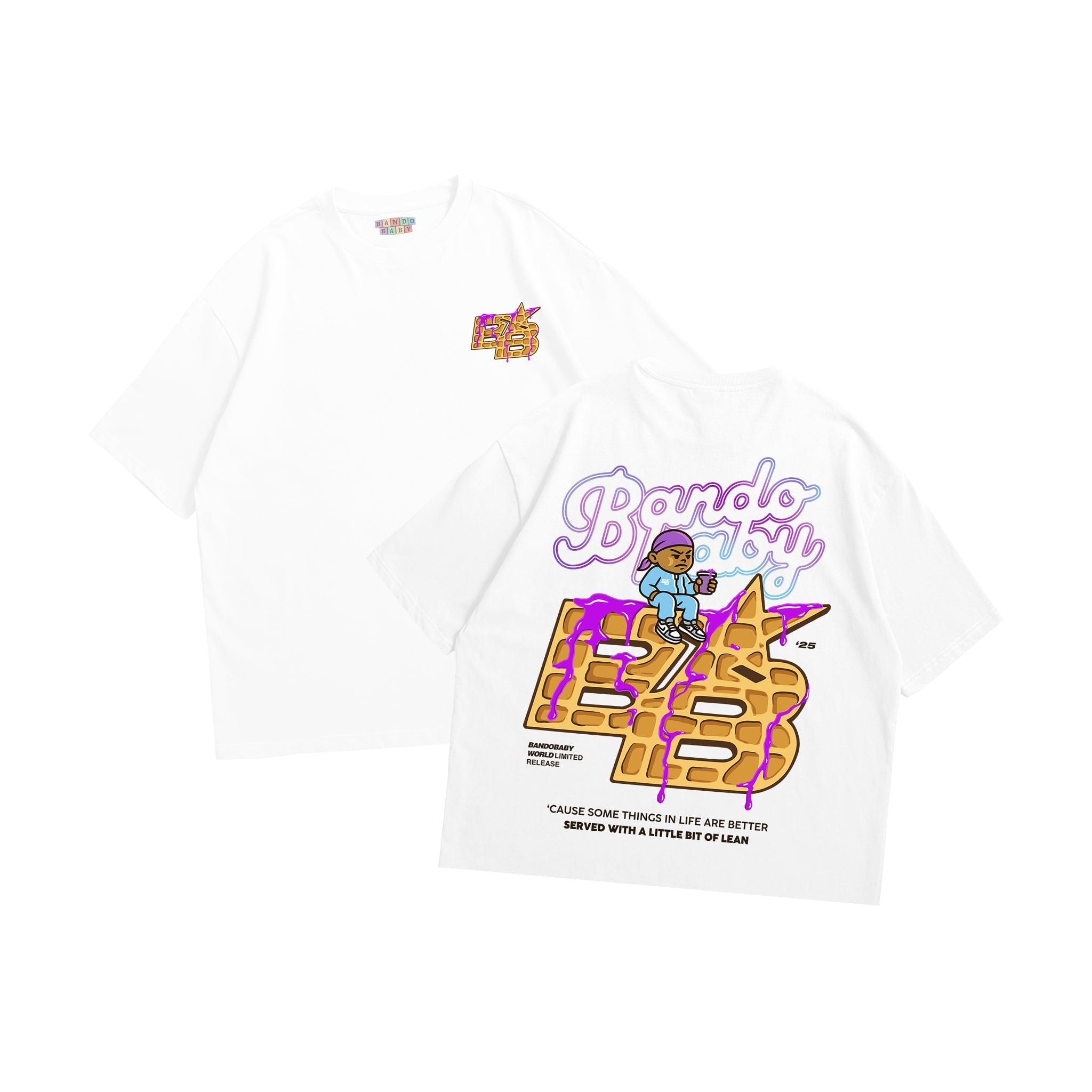 Featuring Bando Baby waffle block BB print with character graphic on the back & a waffle BB logo on the front chest.
