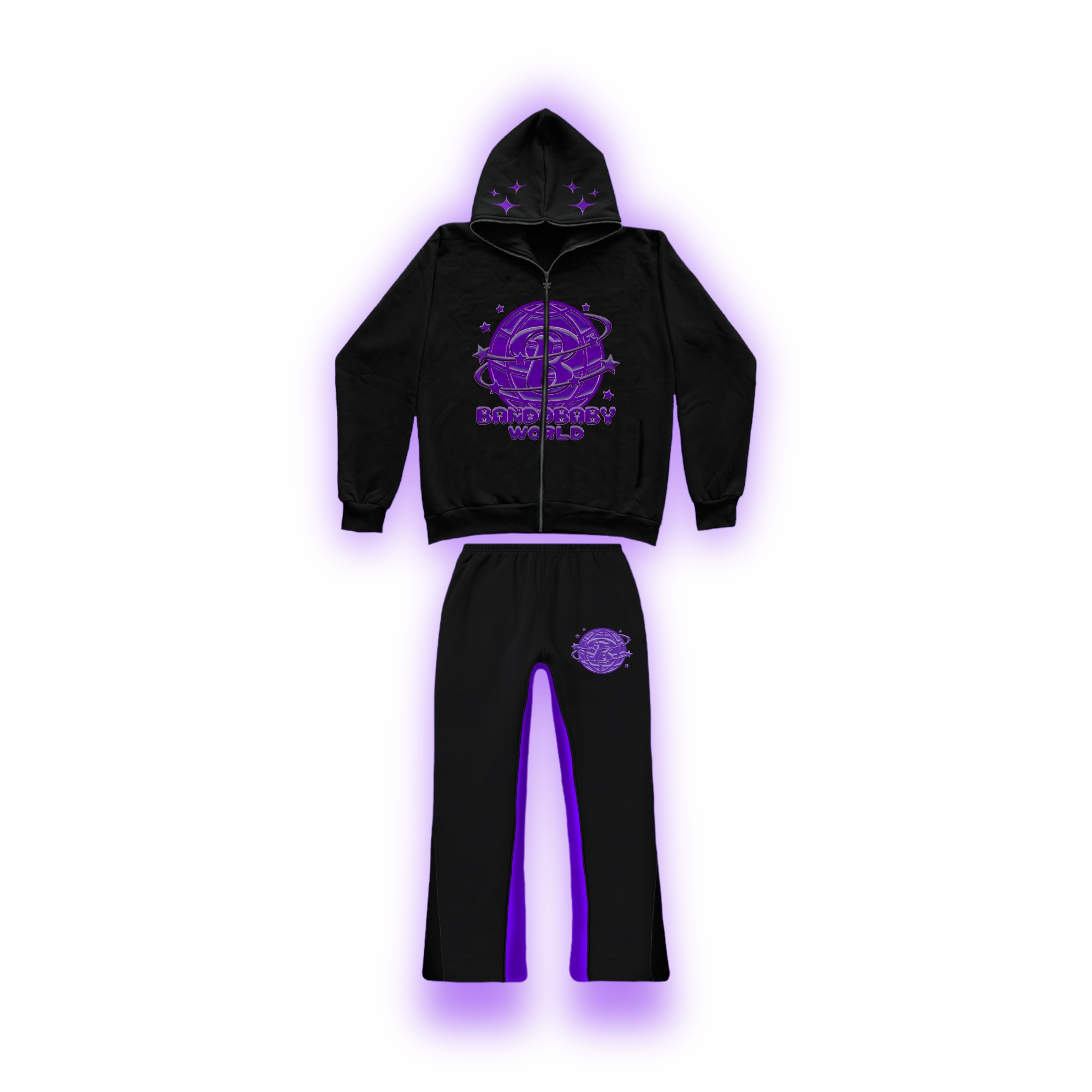 Our Bando Baby World Tracksuits feature a comfortable yet stylish design. The joggers showcase the duo colour running through the tracksuit. The zip up jacket boasts a premium feel with the design embroidered to the centre of the hoodie & also embroidered on the hood itself which is accompanied by joggers which have zips to allow a flared look or not.